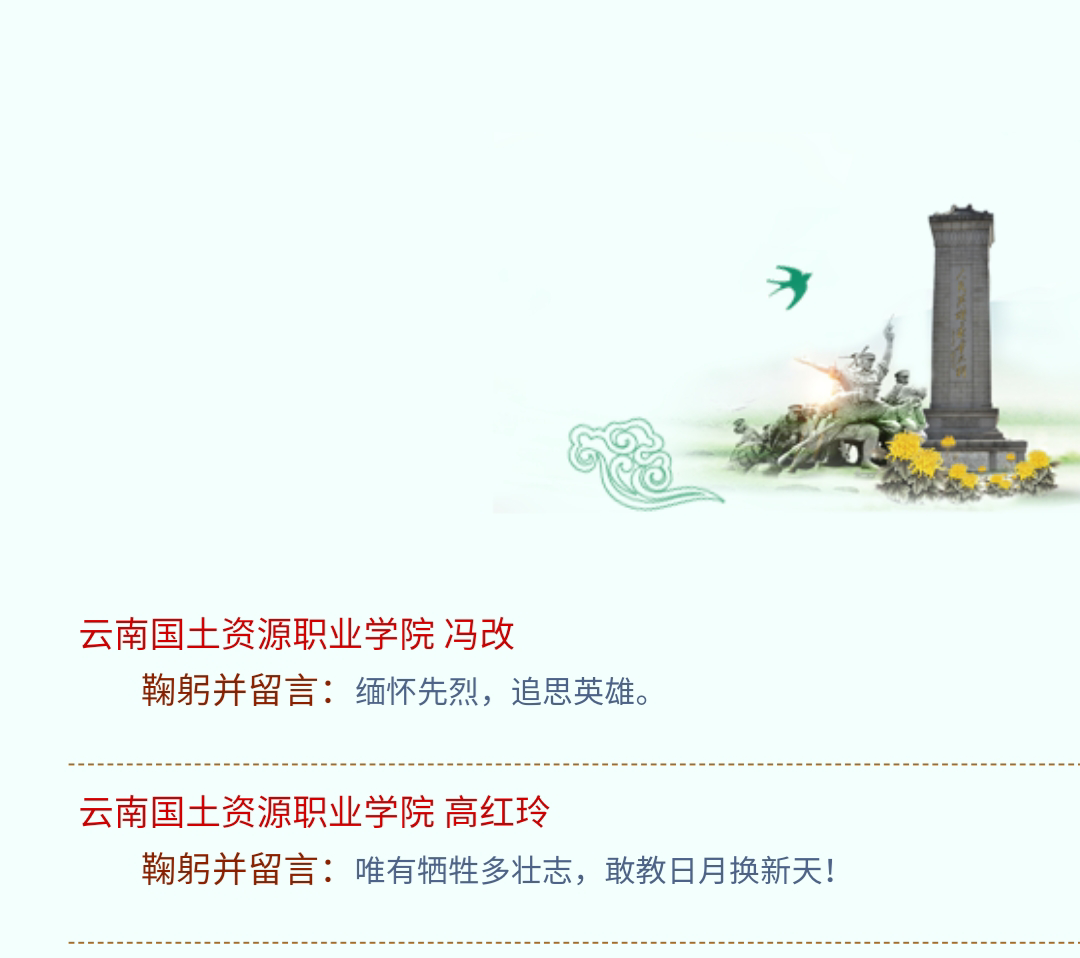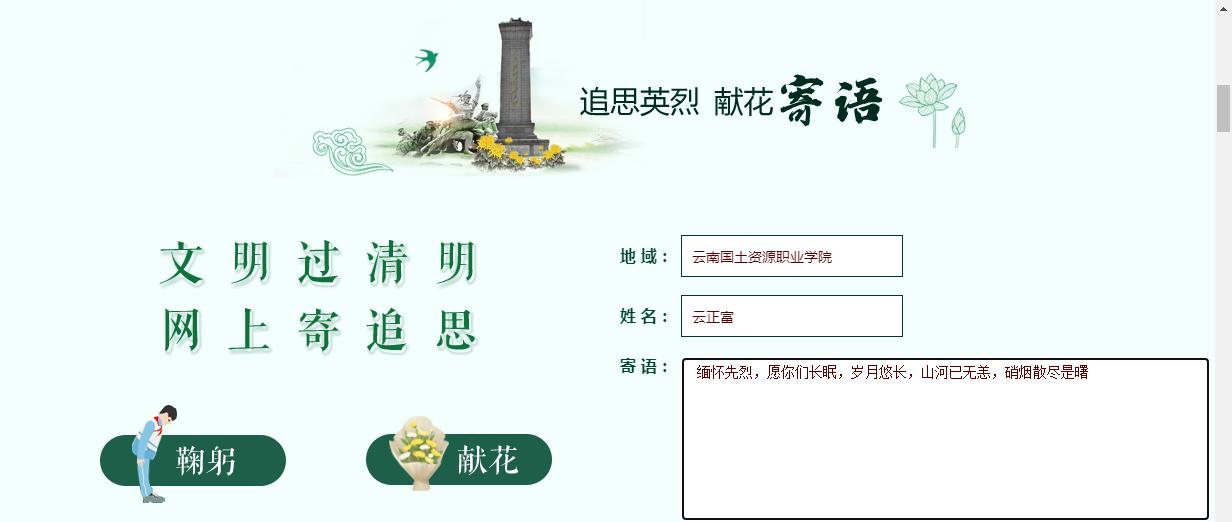 在此次活动中,2026年国际足联世界杯党总支共计39名党员同志进行网上祭英烈活动,以网络寄语为载体,祭英烈于网上,念英烈与心中,深切缅怀革命先烈的丰功伟绩,继承先烈遗志、发扬革 命传统。