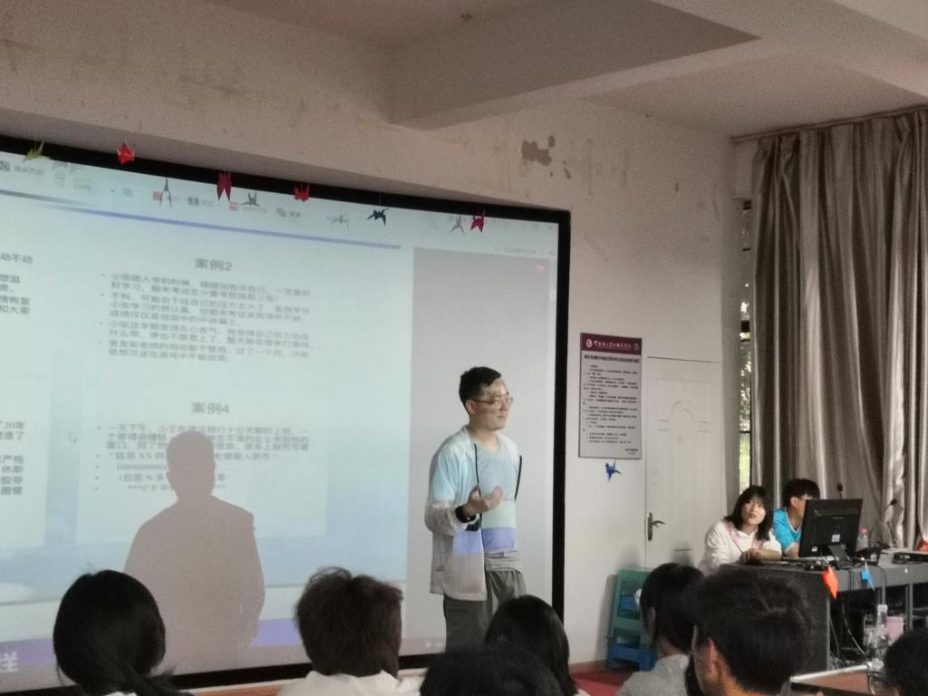 5月26日晚,二级心理健康教育辅导工作站站长和班级心理关怀员培训在笃行楼222教室正式开始。心理健康教研室周若愚老师主讲,周老师从角色定位、工作内容、工作方法、心理健康常识等方面进行了全面讲解,风趣幽默的语言和详实的案例解释赢得了阵阵掌声,各位工作站站长和班级心理关怀员纷纷表示收获良多。