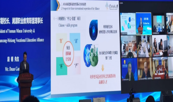 在澜湄职业教育联盟年度表彰仪式上,16家联盟单位分别获得特别贡献奖、服务卓越奖、优秀案例奖和人文交流奖。大会还正式发布了首届澜沧江—湄公河原产地产品创意设计大赛和澜沧江—湄公河流域国家青年旅游线路设计大赛赛程。