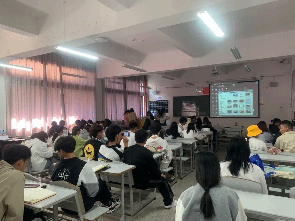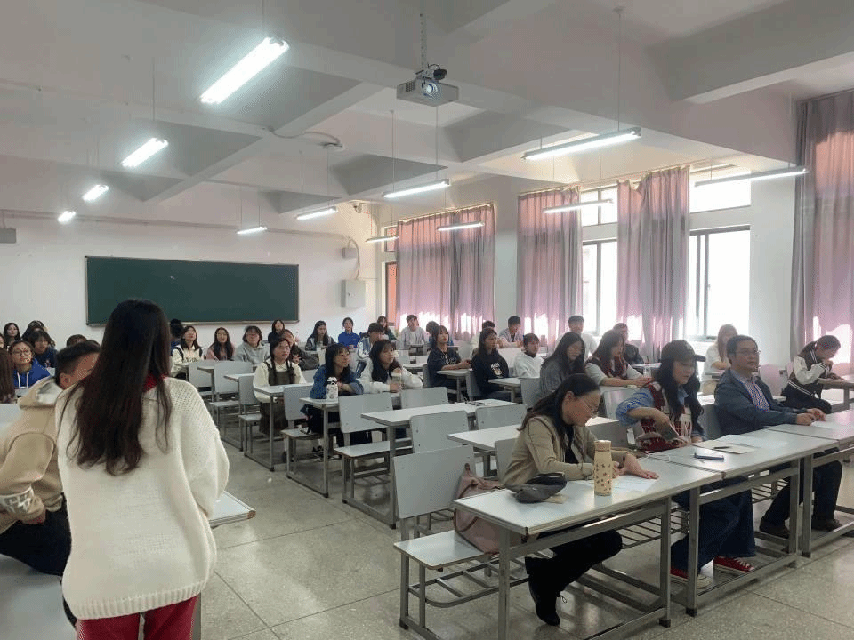 下午一点评委老师与参赛选手陆续到场,接着英语协会的各负责人在会长丁予若的带领与安排下都到了相应的教室负责播发音频与配音视频、协助各位评委老师有序开展评分活动;外语节初赛正式开始。