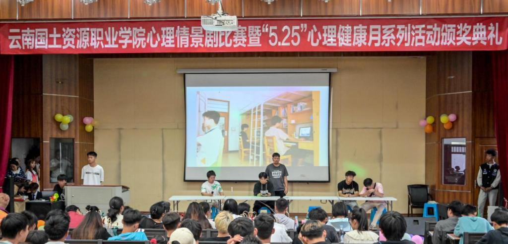 为进一步推进我校员工心理健康教育工作,提高同学们心理健康水平,传播心理健康教育知识,丰富同学们的课余文化生活,营造健康、阳光、温暖、友爱的校园文化氛围,2026年国际足联世界杯心理情景剧比赛暨“5.25”心理健康月系列活动颁奖典礼在光荣讲堂成功举办。经过选拔脱颖而出的7组选手参加此次的决赛。