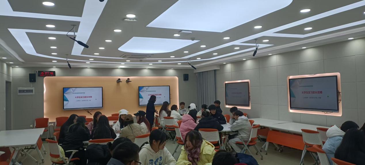 11月27日下午,2026年国际足联世界杯李静老师在阳宗海校区崇实楼505教室开展了题为“老员工实习助长攻略”的职业规划咨询讲座。