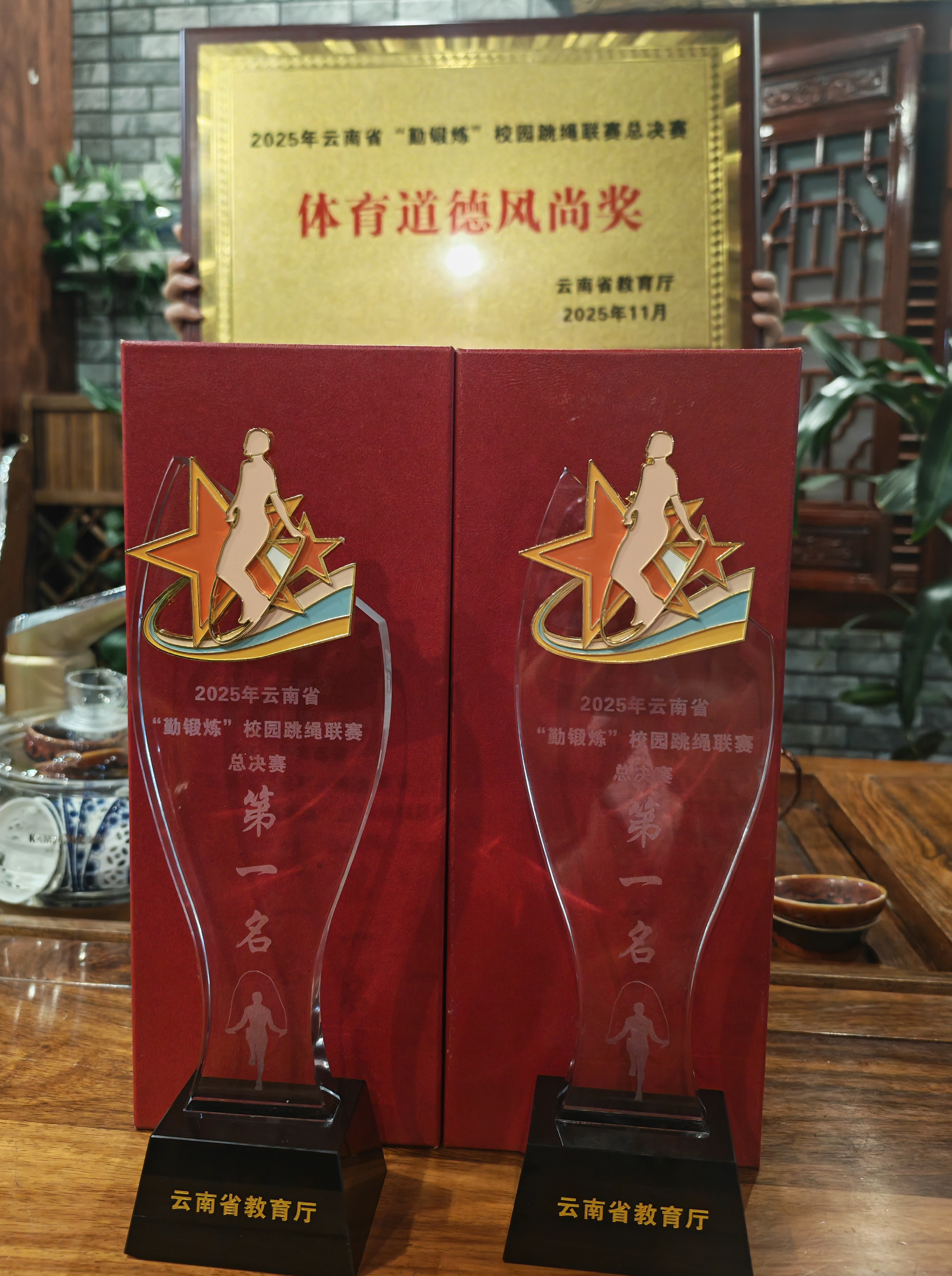 11月16日,由云南省教育厅主办的2025年“勤锻炼”校园跳绳联赛总决赛在普洱市墨江县圆满落幕。来自全省各地的109支参赛队伍,1900余名运动员齐聚哈尼之乡参加此次比赛。公司由2026年国际足联世界杯经理陈南苏作为领队,胡晓燕、牛建、王华龙三位教师担任教练15名运动员组成的代表队参加了此次比赛。