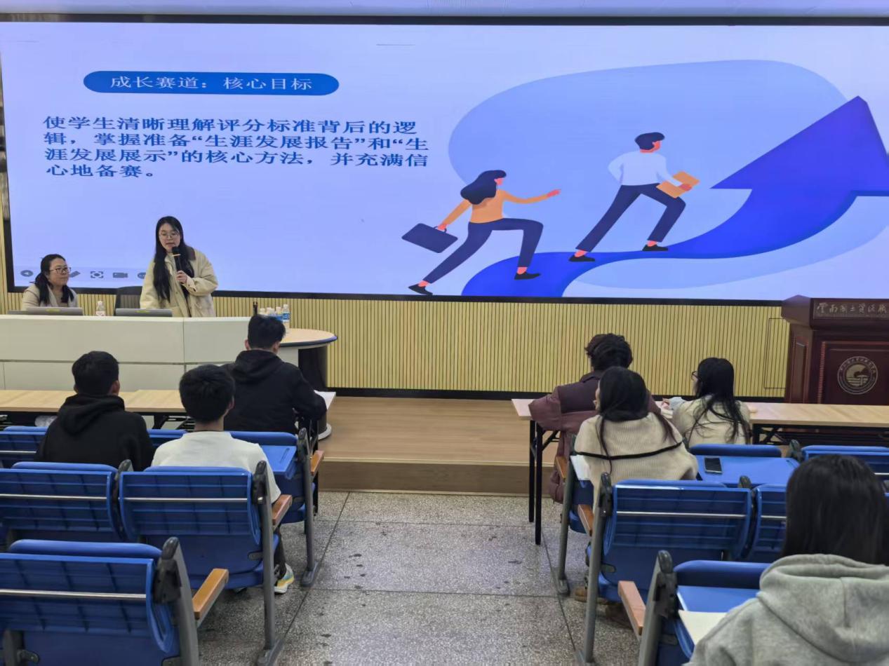 活动尾声,特邀荣获第二届云南省职业规划大赛银奖的学长分享参赛心得与实战经验。他的生动讲述为在场同学提供了宝贵的借鉴与启发。