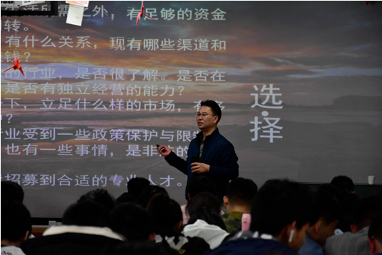 王副书记以“选择”一词拉开讲座序幕,他指出一个人一生中时时刻刻都在面临选择,人们选择不同的工作,谋取不同的职业,不过是选择不同的方式表达自身的生命价值。人在生活中只要选择坚定向前走,怀着自己的信念,终会取得成功。