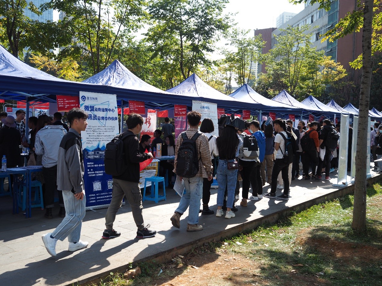 此次招聘会共有近百家企业到场参会,昆明理工大学城市公司国土基地2021届的毕业生们积极踊跃的参加了此次校园招聘会。今年的就业形式依然紧张,在走访中我们了解到,虽然面对与日俱增的就业压力,但是不少同学心态依然轻松,并做好准备,对找到工作充满信心。