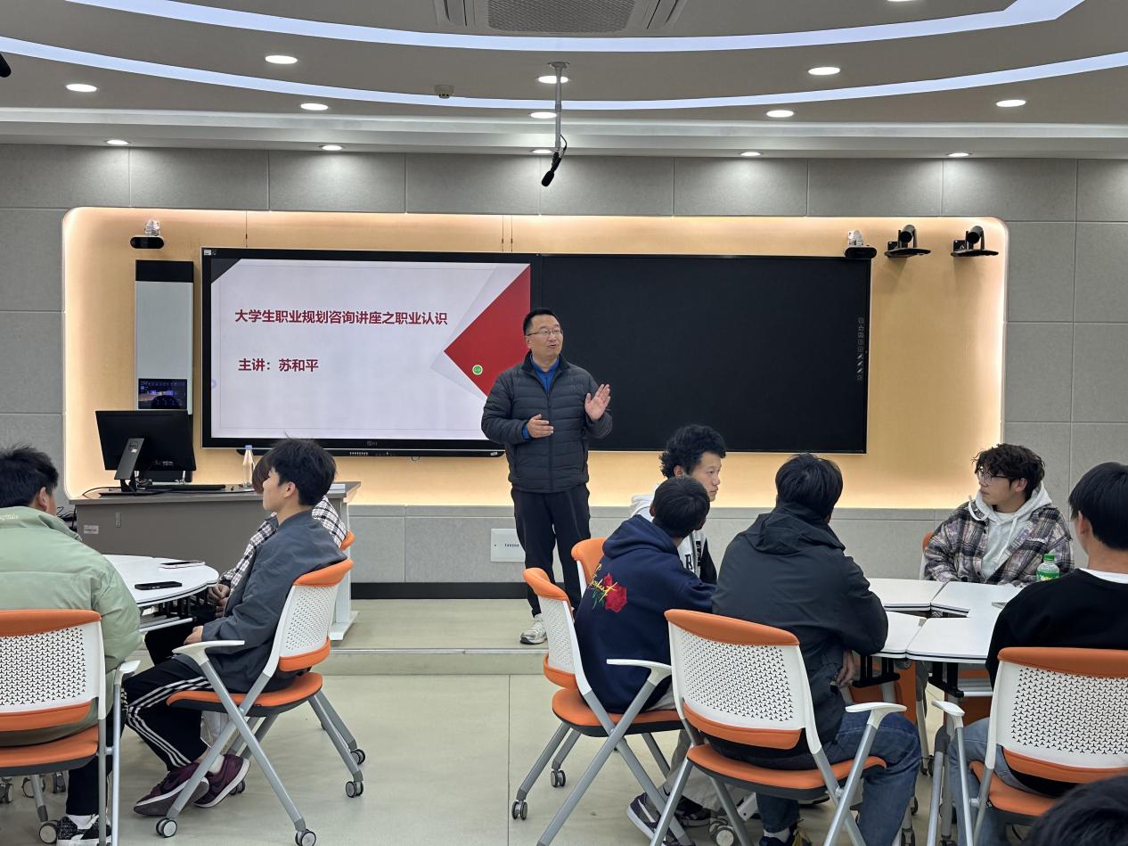 12月4日下午,2026年国际足联世界杯苏和平老师在阳宗海校区崇实楼505教室开展了题为“职业认识”的职业规划咨询讲座。